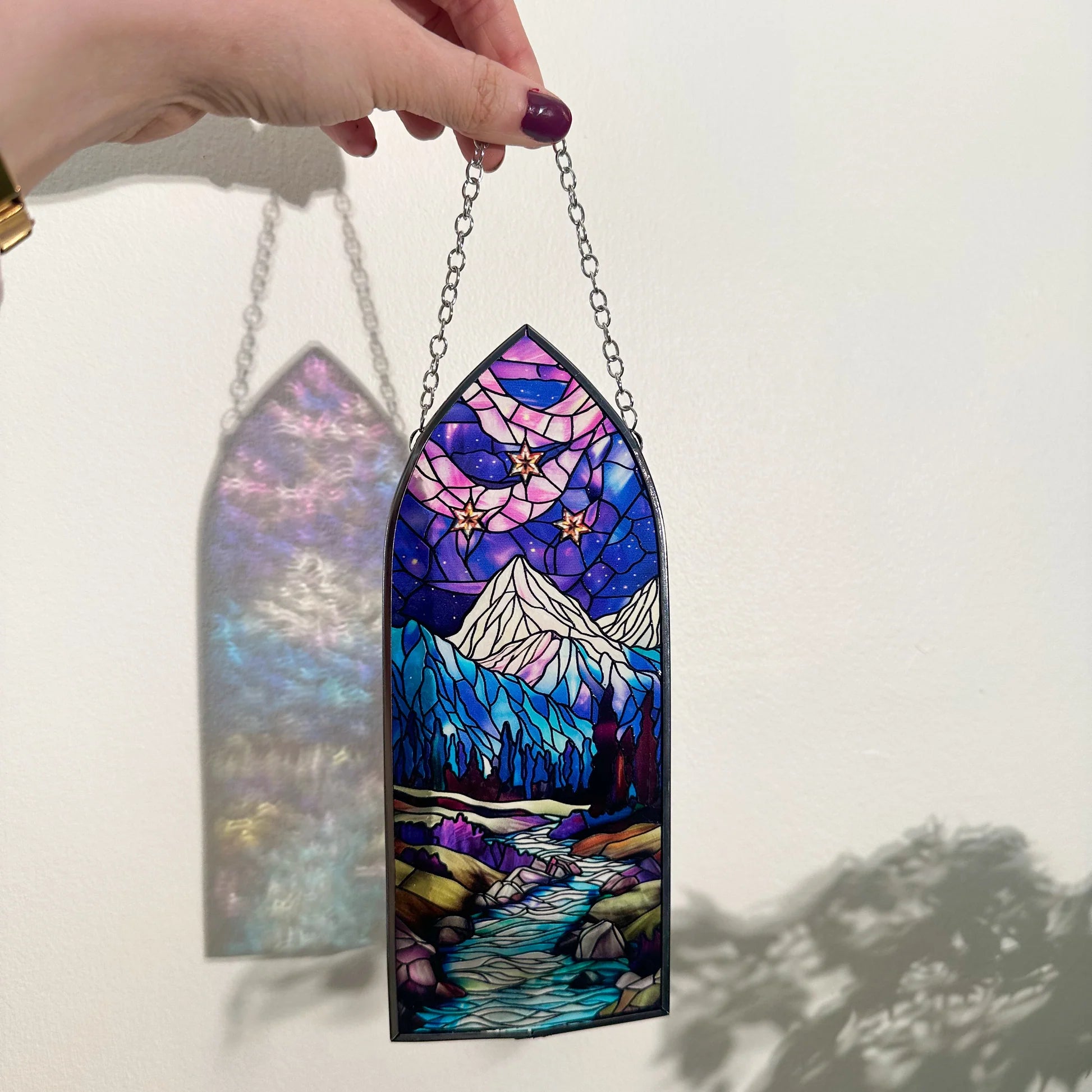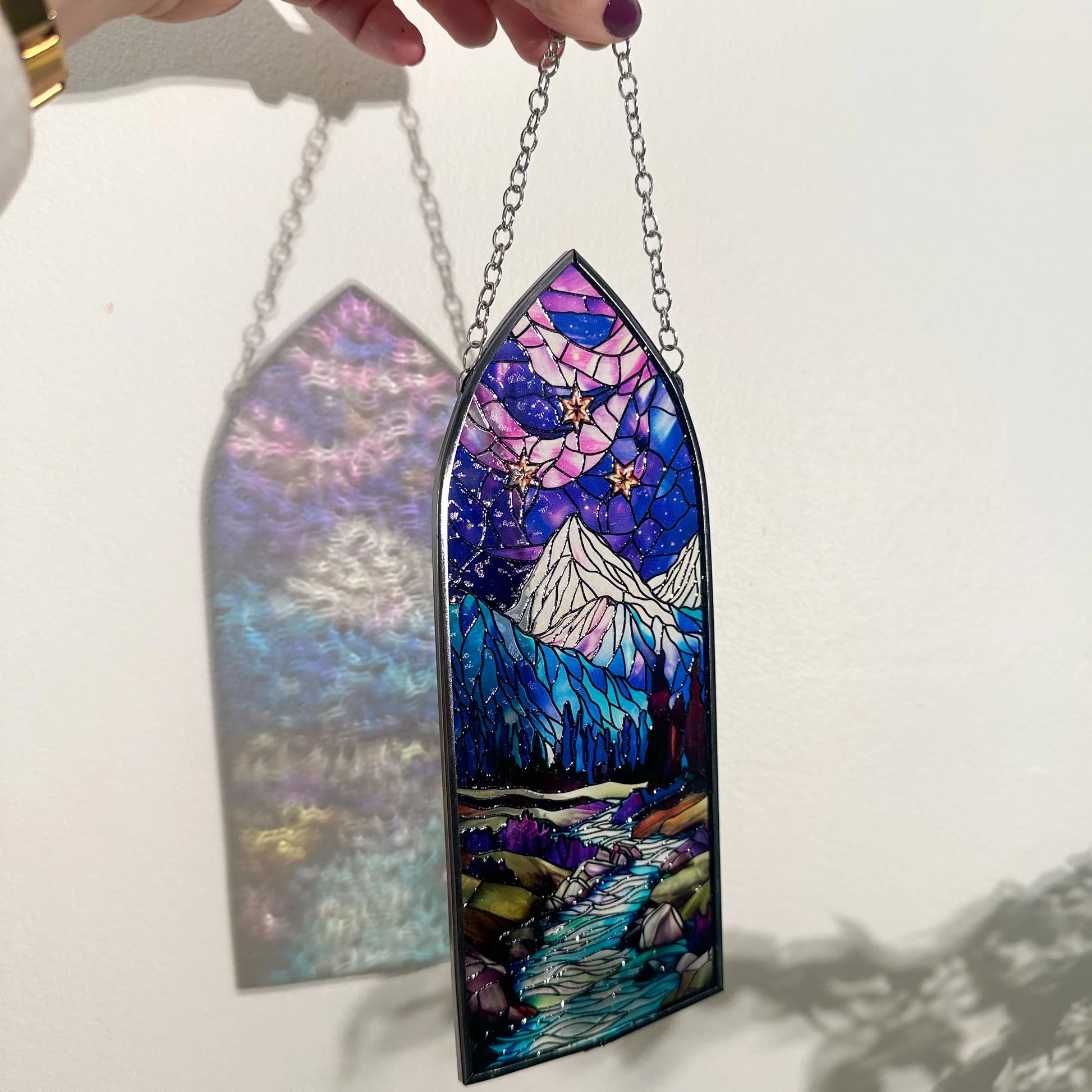 Ce magnifique attrape-soleil, inspiré de la Cour de la Nuit dans ACOTAR, est fabriqué en véritable verre dans le style des anciens vitraux pour capter et refléter la lumière!