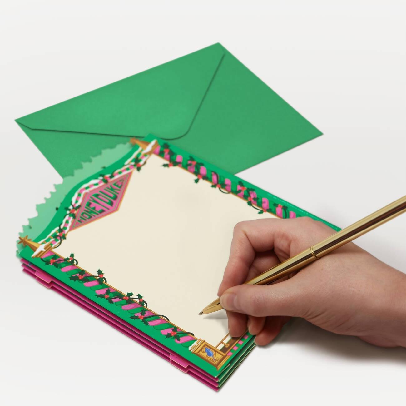 Envoyez un courrier véritablement ensorcelé avec cette magnifique carte 3D mettant à l'honneur la célèbre confiserie de Pré-au-Lard : Honeydukes. Débordante de couleurs et de friandises sorcières, elle capture l'essence joyeuse du monde des sorciers.