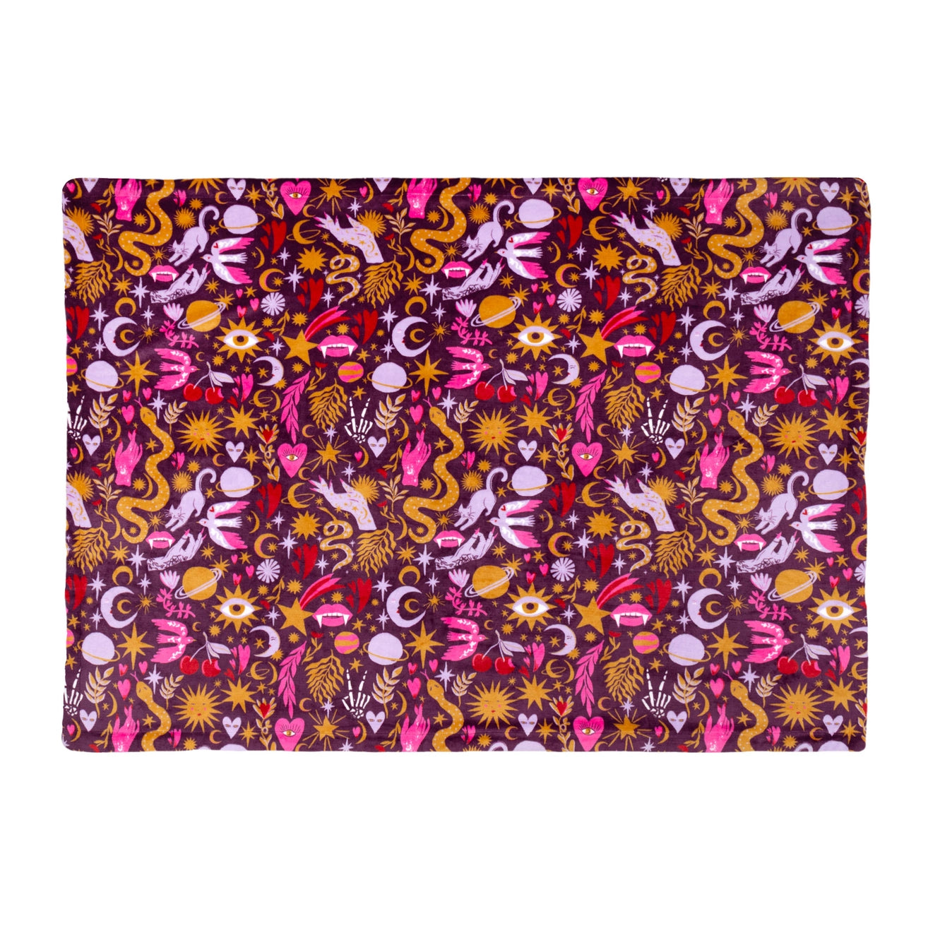 Ce plaid tout doux vous invite à un moment cosy pour les longues soirées d'automne et d'hiver. Il fera son petit effet dans n'importe quelle pièce de la maison, sur votre canapé ou sur votre lit, et ravira vos invités amateurs de chat, vampire ou encore ésotérisme.