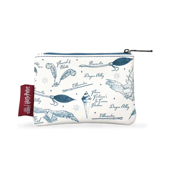Ce porte-monnaie capture l'essence du Chemin de Traverse avec sa représentation des différentes boutiques magiques. Dans des tons bleus et blancs, ce porte-monnaie évoque l'ambiance enchanteresse de cet endroit emblématique de l'univers de Harry Potter!