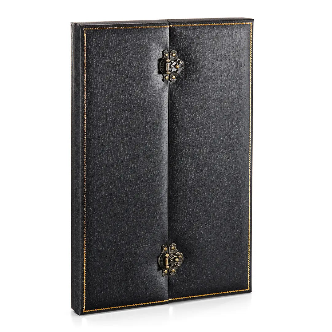Écrin de collection inclus, en simili cuir de 33 cm de haut, avec fermoirs métalliques pivotants et intérieur en velours noir